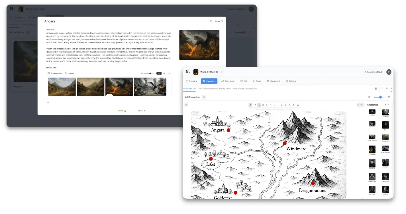 Build rich backstories, define values and flaws and explore inner conflicts using modern storytelling frameworks that help you spark tension and growth.
