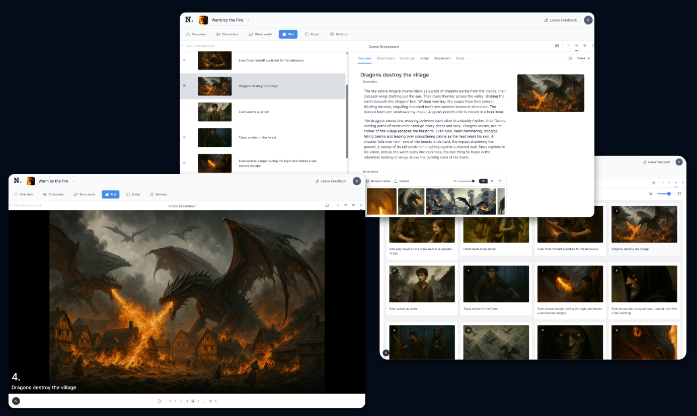 Start with high-level beats, then expand them into rich, meaningful scenes filled with character, conflict and momentum. Rearrange and refine your sequence until the pacing feels just right.